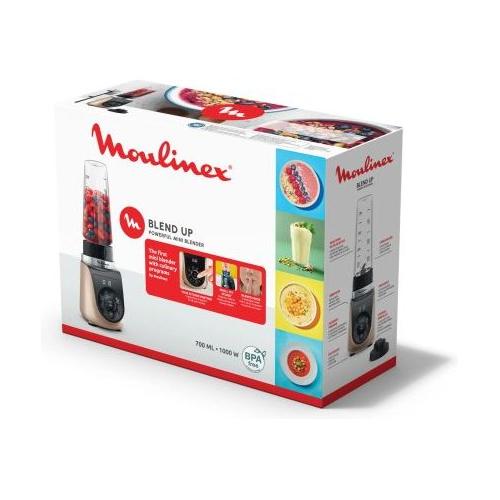 Potente, facile e compatto, Blend Up è tutto ciò che ami in un solo elettrodomestico: un frullatore piccolo ma robusto che vanta una concentrazione inedita di tecnologia e un design facile da pulire. Gusta frullati sani e bevande vegetali, ma anche deliziose salse, zuppe, intingoli e molto altro. Frulla le bevande direttamente nella bottiglia da viaggio da portare ovunque. È disponibile anche una modalità silenziosa dedicata per un utilizzo senza rumore mattina e sera!