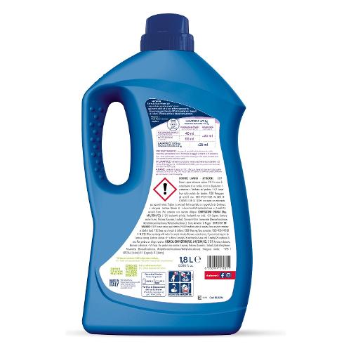 5-15% Tensioattivi anionici, Tensioattivi non ionici. <5% Sapone. Contiene anche: Enzimi, Profumo (Coumarin, Linalool), Sbiancanti Ottici. Conservante (Benzisothiazolinone, Methylchloroisothiazolinone/Methylisothiazolinone).