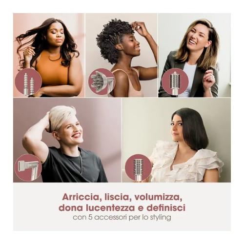 Passa da asciugacapelli a styler e viceversa: trasforma la tua routine con l’asciugatura potente e rapida insieme alla versatilità di uno styler multiaccessoriato