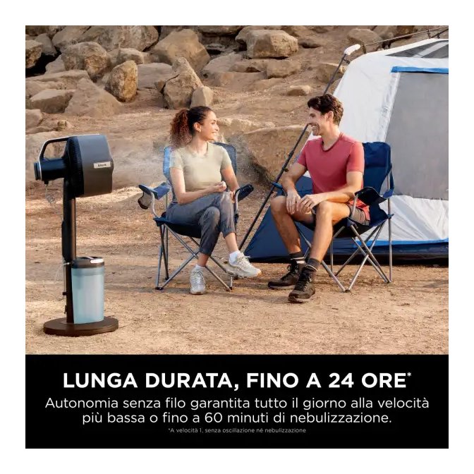 La nebulizzazione in giardino come l’hai sempre sognata: senza tubi né antiestetici secchi d’acqua. Utilizzalo in modalità nebulizzazione o ventilatore, da terra o da tavolo. Autonomia senza filo a lunga durata.