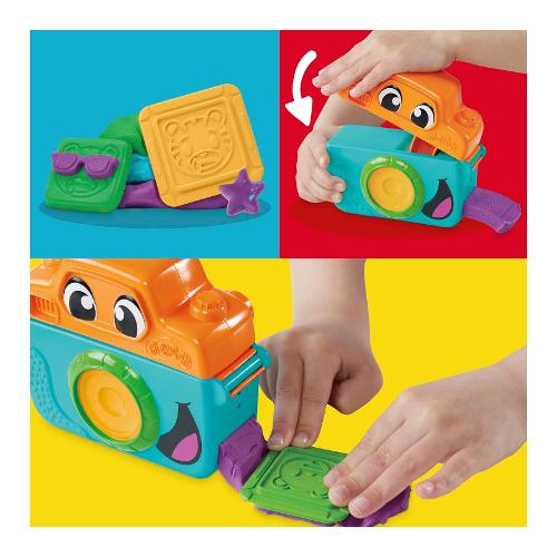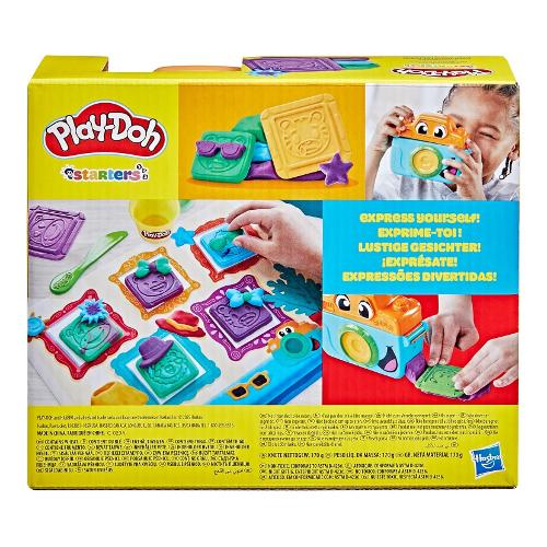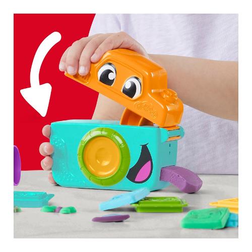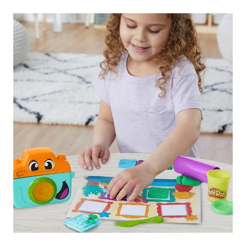 Fotografa un mondo selvaggio di volti e sentimenti con lo starter set Piccoli fotografi di Play-Doh! La macchina fotografica giocattolo crea le strisce piatte di Play-Doh per farle assomigliare a una pellicola e poi i bambini possono usare i 5 stampini per creare finti ritratti con buffe facce di animali. Personalizza le facce degli animali con stampi divertenti come baffi, cappelli, occhiali e altro ancora. I giochi di immaginazione per bambini e bambine diventano ancora più colorati con 3 vasetti di Play-Doh da 56 g ciascuno. I giocattoli per età prescolare, come questo starter set di Play-Doh, aiutano i bambini e le bambine a esplorare le loro capacità socio-emotive e fino-motorie. Che si tratti di principianti o di esperti di Play-Doh, è un ottimo regalo o un'aggiunta ai giocattoli sensoriali per bambine e bambini . La confezione include: strumento fotocamera, tappetino da gioco, 5 stampini a forma di faccia, rullo, coltello finto e 3 vasetti di pasta modellabile a marchio Play-Doh (peso netto 170 g).