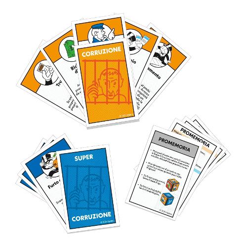 il classico gioco Monopoly più emozionante e veloce con l'espansione "In prigione!" Questa è un'espansione, non un gioco indipendente (per giocare serve il gioco monopoly classico, venduto separatamente). Collega questa espansione al tabellone e comincia. l'espansione trasforma la casella In Prigione! nella Super Prigione. I giocatori pagano di più per uscire dalla Super Prigione, ma possono anche diventare più corrotti (e ricchi) con le carte Super Corruzione. Più tempo un giocatore trascorre in prigione, più tempo ha a disposizione per raccogliere carte Corruzione, che gli permettono di creare scompiglio, essere furtivo e ottenere un vantaggio sugli avversari La confezione include: casella aggiuntiva Prigione, casella aggiuntiva Super Prigione, 32 carte Corruzione, 12 carte Super Corruzione, 2 caselle aggiuntive In Prigione!, dado Rapina con adesivi, dado Fuga con adesivi, 6 carte Promemoria e guida all'espansione.