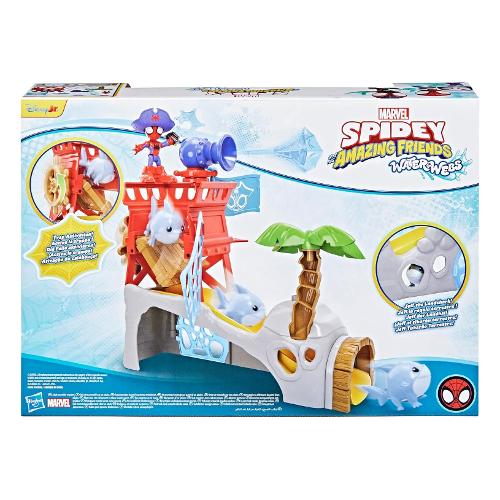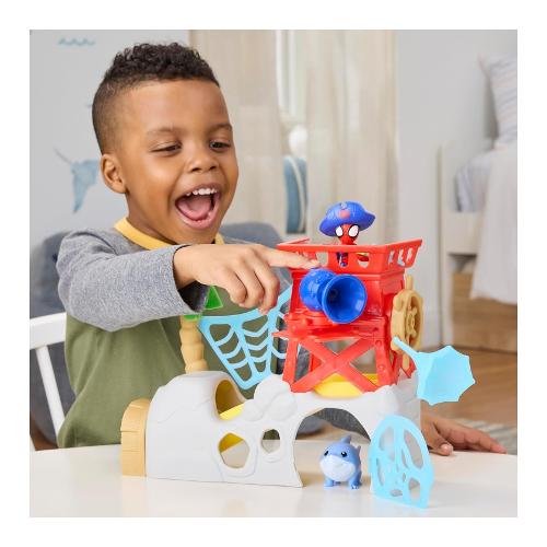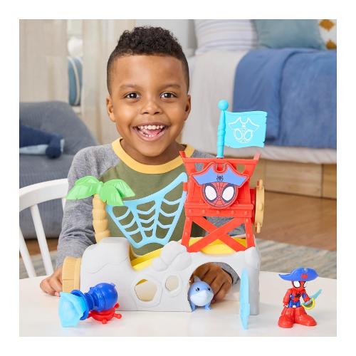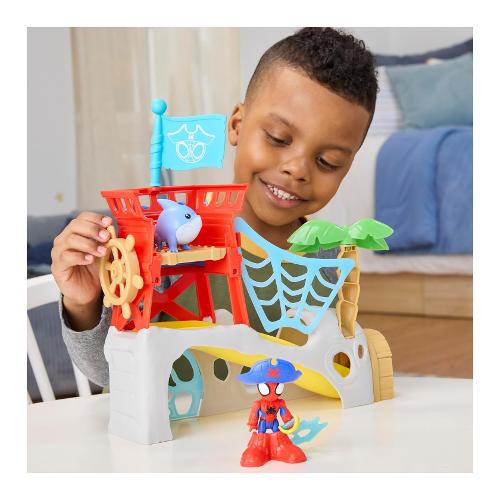 I bambini e le bambine possono immaginare imprese e avventure spericolate con l'isola di Spidey Water-Webs di "Spidey e i suoi fantastici amici", di Hasbro! Il playset include il giocattolo snodabile di Spidey da 7,6 cm e un'action figure non snodabile di Jeff the Landshark e presenta una botola con scivolo, una grotta e altro ancora. Trasforma Spidey in Spidey pirata con accessori come il cappello da pirata, gli stivali e l'uncino. Include anche palma, bandiera e cannone spara-ragnatele rimovibili che l'action figure di Spider-Man può tenere in mano con la sua presa a C! Stimola il gioco di immaginazione a tema pirati per bambini e bambine dai 3 anni in su con altri giocattoli "Spidey e i suoi fantastici amici", tra cui action figure, veicoli giocattolo e playset! I fantastici giocattoli Marvel sono un regalo ideale per bambini e bambine, per compleanni, festività e altre occasioni speciali