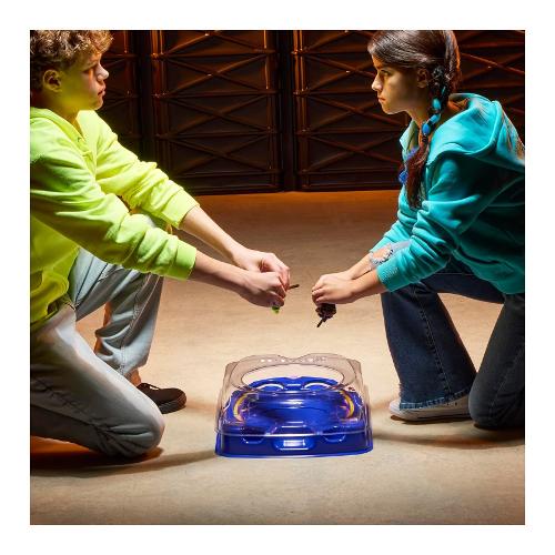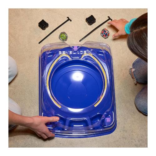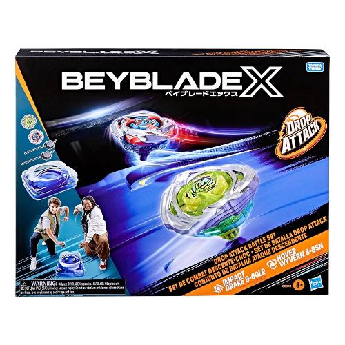 Il set da battaglia Drop Attack di Beyblade X contiene tutto ciò che serve per iniziare subito la battaglia: Beystadium, 2 trottole e 2 lanciatori! La guida X-Celerator dell'arena può far accelerare le trottole in un Xtreme Dash che le fa schizzare per tutta l'arena per collisioni devastanti ed esplosioni epiche. E con il Beystadium Drop Attack, puoi atterrare sulla trottola dell'avversario: la guida X-Celerator sopraelevata dell'arena può mandare le trottole Beyblade a un'altezza superiore, da dove possono cadere sulla trottola rivale! Usa i 2 lanciatori per scatenare il bey di attacco Impact Drake 9-60LR e il bey di difesa Hover Wyvern 3-85N in uno scontro frenetico. I Blader lanciano le loro trottole contro quelle degli avversari per guadagnare punti: il primo a ottenere 4 punti vince. Scambia la lama, il cricchetto e la punta intercambiabili con gli strati di altre trottole Beyblade X (vendute separatamente) per creare la tua trottola perfetta. I giocattoli Hasbro Beyblade con trottole autentiche in pressofusione di alluminio di Takara Tomy sono regali perfetti per bambini e bambine dagli 8 anni in su. La confezione include set da combattimento Xtreme con Beystadium, 2 trottole Beyblade X e 2 lanciatori Beyblade X.