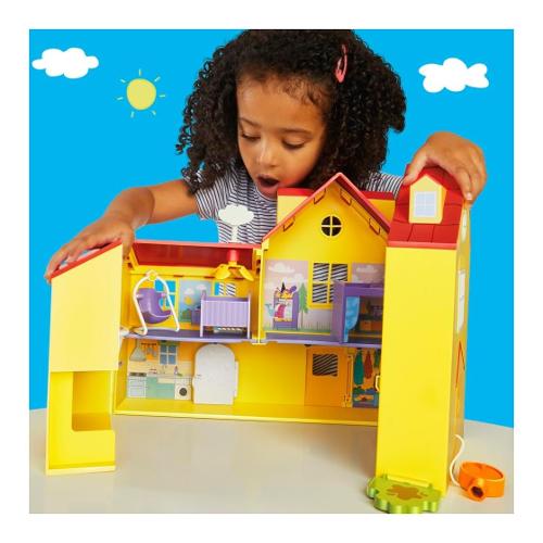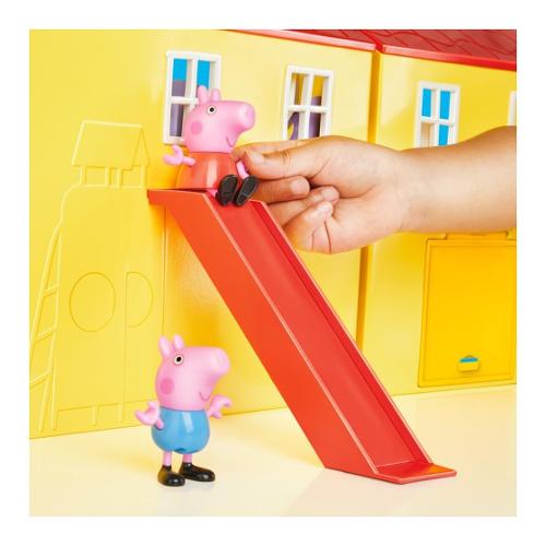 Con il playset Casa Grande Famiglia di Peppa Pig, i bambini possono ricreare le loro scene preferite del cartone animato e immaginare nuove avventure con Peppa, George e la piccola Evie. Questa gigantesca casa larga 80 cm ha due livelli e sette stanze, piene di accessori che i bambini possono usare per arredare e decorare la casa a loro piacimento, tra cui un letto a soppalco arcobaleno per Peppa, un letto a forma di dinosauro per George, una vasca da bagno e un divano!