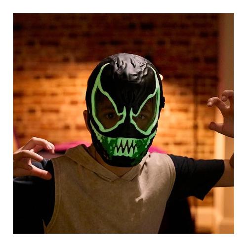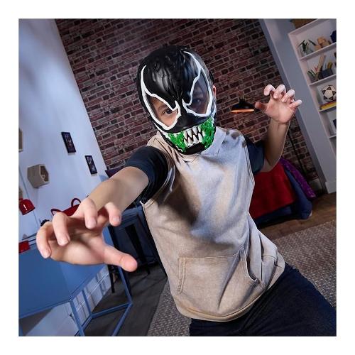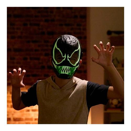 Bambini e bambine possono immaginare di assumere i poteri del simbionte alieno mentre vestono i panni del malvagio Venom con questo giocattolo Marvel di Spidey! Comoda da indossare e dotata di una cinghia elastica, questa maschera per bambini e bambine di Spider-Man VenomVersus si adatta alla maggior parte di aspiranti spara-ragnatele, dai 5 anni in su. La maschera di Venom che si illumina al buio presenta anche i classici design e decorazioni Marvel, ispirati all'aspetto di Venom nei fumetti, tra cui le spaventose zanne e la bava verde del simbionte! I bambini e le bambine possono anche sentire 11 frasi di Venom e 7 effetti sonori da simbionte premendo il pulsante sul lato di questo giocattolo per roleplay. È un regalo Marvel Spider-Man fantastico per soddisfare la tua passione e l'accessorio perfetto per qualsiasi tuta o costume di Venom per Halloween o con cui giocare ogni giorno!