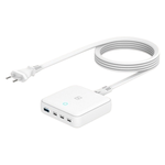 Estremamente leggero e sottile, ma potente. Ricarica fino a 4 dispositivi simultaneamente, come laptop, tablet, smartphone e altro. Doppia uscita USB-C con tecnologia Power Delivery 3.0 e uscita USB-A QC 3.0. Cavo di alimentazione da 1,5 mt con spina europea.