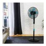 Il ventilatore è completamente regolabile con una barra telescopica regolabile in altezza da 110 a 130 cm, che si adatta a ogni utente e situazione. È possibile anche selezionare l’angolazione di incidenza del flusso d’aria.