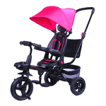 Triciclo pieghevole con timone direzionale ; seggiolino girevole 360 e parasole regolabile. Protezioni laterali e cintura, ruote in gomma e poggiapiedi . Portagiochi posteriore con cestino e borsa. Facile montaggio