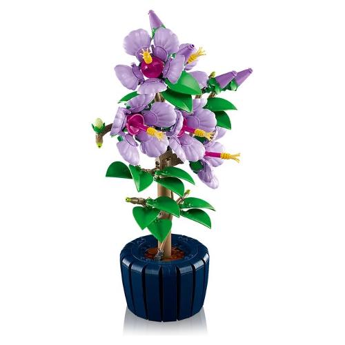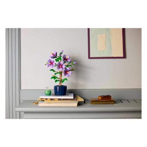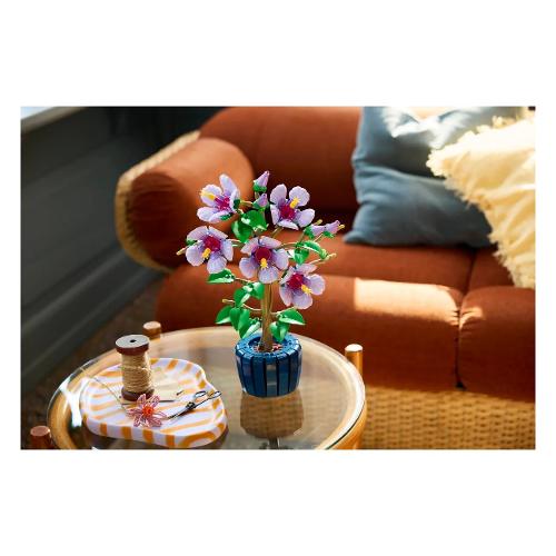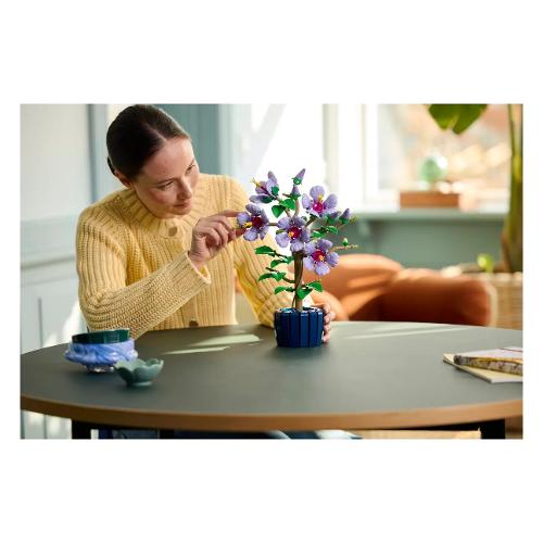 Divertiti a costruire questa pianta LEGO che presenta 5 grandi fiori, 4 fiori che stanno per sbocciare e 2 boccioli prima di scoprirne i dettagli. I grandi fiori hanno petali color lavanda e stami gialli, mentre le foglie sono verde chiaro. Una volta terminata la costruzione dell’ibisco, puoi spostare i petali e posizionare le foglie per aggiungere un tocco di personalizzazione alla tua creazione.
