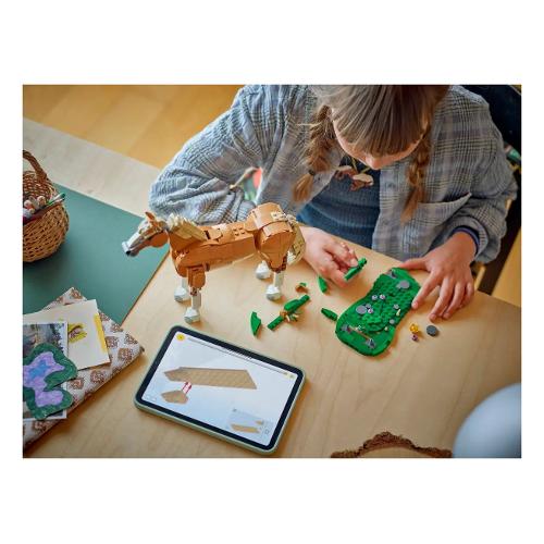Le bambine e i bambini amanti degli animali, dai 9 anni in su, possono divertirsi con questo set da costruzione Cavallo meraviglioso (31166). Il cavallo giocattolo è altamente snodabile e può muovere la testa, il collo, i fianchi, le caviglie, la coda e uno dei ginocchi. Il set contiene inoltre una base a effetto erba, dove i bambini possono esporre il cavallo in 3 diverse pose: in piedi su 3 o 4 zampe, oppure impennato sulle zampe posteriori.