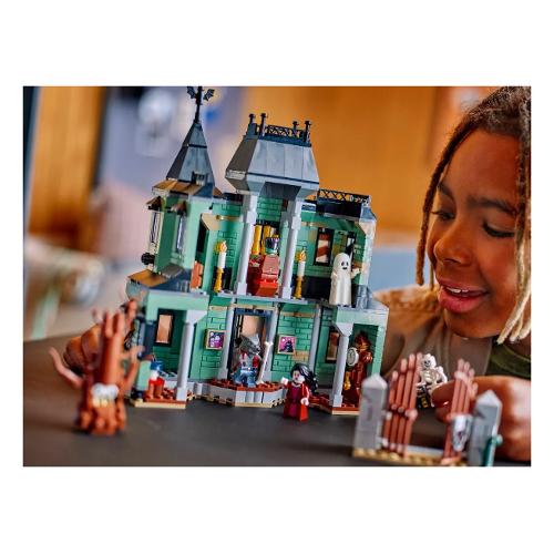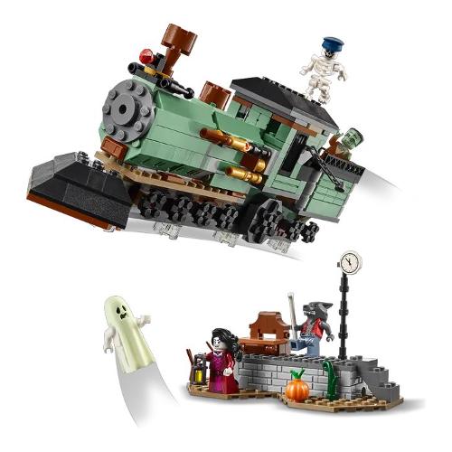 I bambini e le bambine dai 9 anni in su possono divertirsi con 3 opzioni di costruzione utilizzando gli stessi mattoncini: una casa stregata interattiva, una nave fantasma giocattolo o un treno fantasma con relativo marciapiede. Ogni set include 5 minifigure: un lupo mannaro, un vampiro, un fantasma con mantello fosforescente, il mostro di Frankenstein e uno scheletro.