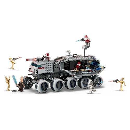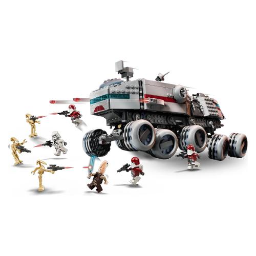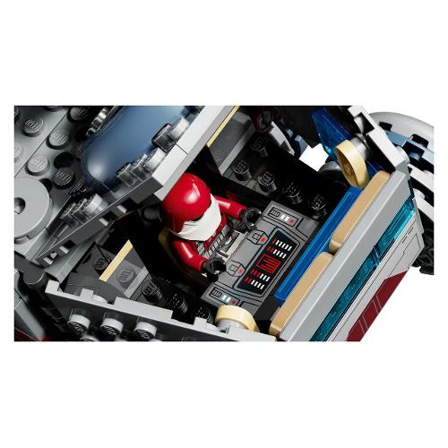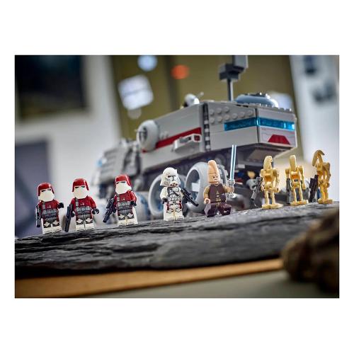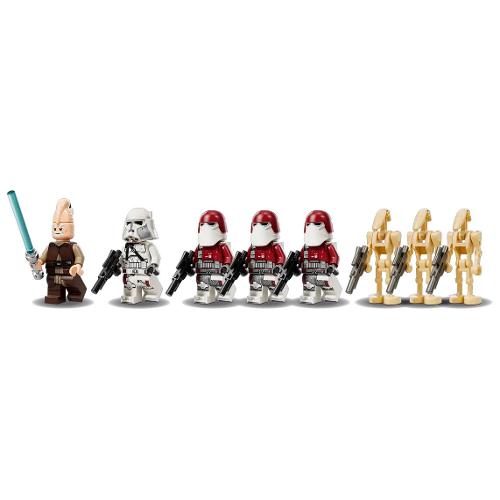 Il set include 5 minifigure LEGO Star Wars: Ki-Adi-Mundi con spada laser, il Comandante Bacara e 3 Marine Galattici, ciascuno con blaster, oltre a 3 personaggi LEGO di droidi da battaglia con blaster. Posiziona le minifigure LEGO nelle cabine di pilotaggio anteriori e posteriori, nel compartimento principale (dotato di posti a sedere e porta-armi), sulla postazione di osservazione elevabile e nella torretta posteriore dotata di shooter.
