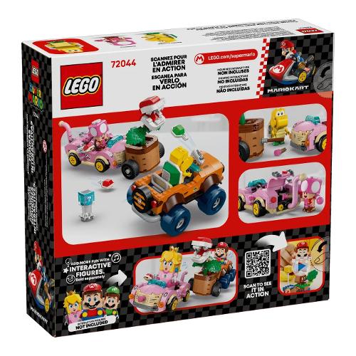 Aggiungi un personaggio di LEGO® Mario™, LEGO® Luigi™ o LEGO® Peach™ (dai set 71439, 71440, 71441 o 72043, disponibili separatamente) per il gioco interattivo, e ottieni oggetti digitali dalla scatola oggetto e attiva gli effetti sonori/visivi di Mario Kart quando guidi un veicolo.
