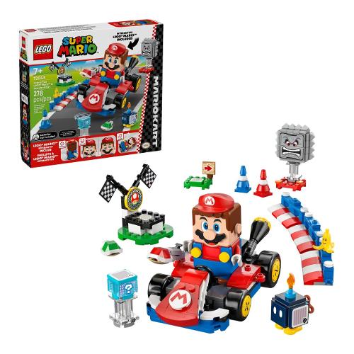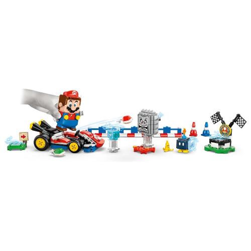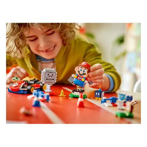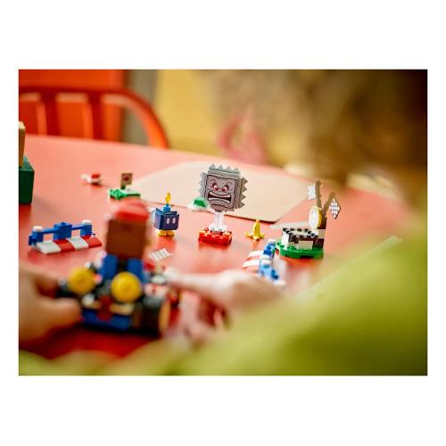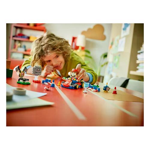 Con questo playset di Mario Kart™ in mattoncini (72043), i bambini potranno creare la loro pista e fare squadra con LEGO® Mario™ sul suo Kart standard per tante gare interattive. Un fantastico regalo LEGO® Super Mario™ per bambini, bambine e gamerdai 7 anni in su, il set contiene una figura interattiva di LEGO Mario e un Kart standard con azione di derapata e funzione di lancio di gusci per divertirsi con le gare e il gioco di finzione. Per creare la pista, ci sono un’area di partenza, barriere collegabili, coni stradali e un cerchio del vincitore. Guida il Kart standard con LEGO Mario per attivare i suoni e gli effetti visivi di Mario Kart, guadagna ricompense digitali dalla scatola oggetto, sconfiggi il Bob-omba e il Twomp e scopri come LEGO Mario reagisce alle basi LEGO verdi e rosse. Esplora la gamma completa di set di gioco Mario Kart LEGO Super Mario (disponibili separatamente) per ulteriori veicoli e personaggi ed espandere il divertimento. Le istruzioni per la costruzione sono contenute nella scatola o nell’app LEGO Super Mario.