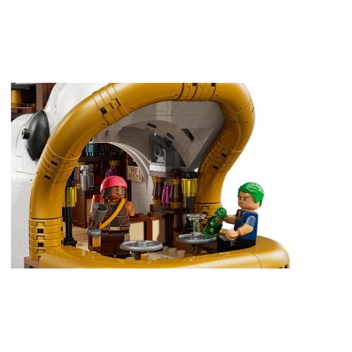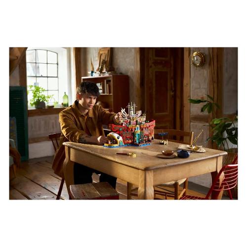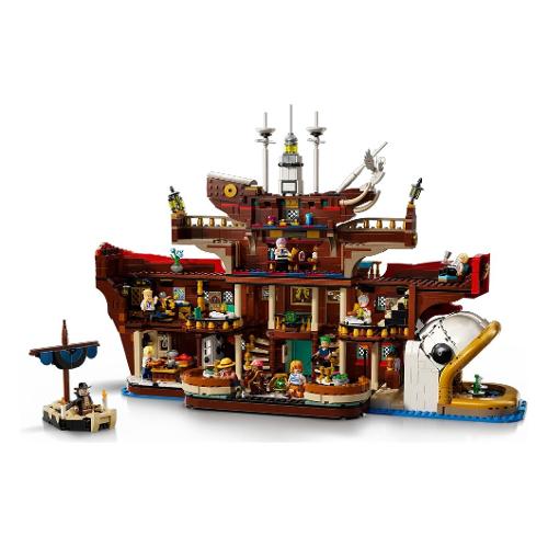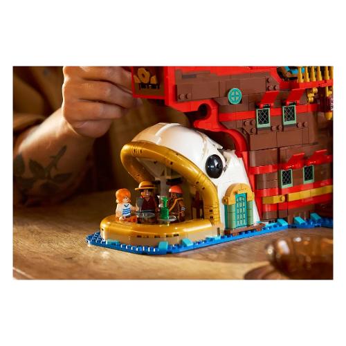 Questo imponente pezzo da esposizione a forma di nave contiene numerose stanze accessibili al suo interno, tra cui la cucina e la sala da pranzo, gli alloggi di Zeff e la stanza del tesoro. Le scene classiche possono essere riprodotte con le 10 minifigure LEGO: Luffy, Zoro, Nami, Usopp, Sanji, Zeff, Garp, Helmeppo, Koby e Mihawk. Il kit contiene anche accessori autentici, tra cui 5 poster “Ricercato”. L’app LEGO Builder consente agli utenti di ingrandire, ruotare i modelli in 3D e seguire i progressi della costruzione.