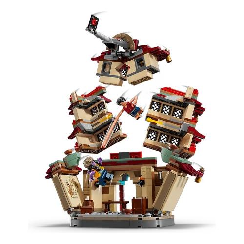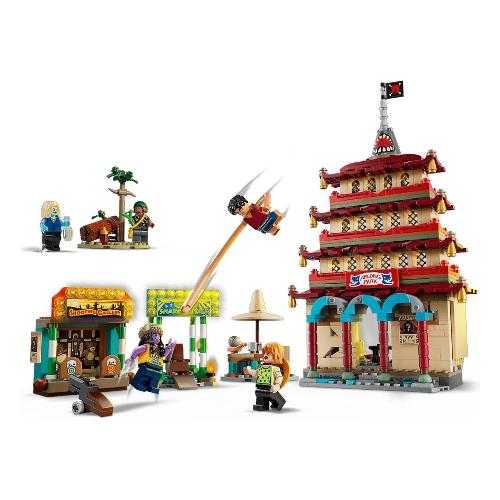 Il set da costruzione contiene le minifigure di Luffy – con pezzi per allungare le sue braccia – Nami, Usopp, Arlong e Chu. I bambini possono far crollare il modello della pagoda durante la battaglia toccandolo sulla parte superiore, mentre il tiro a segno offre ai bambini divertenti bersagli da colpire con gli shooter. Il cattivo Arlong può essere posizionato su un trono all’interno dell’edificio dell’attacco degli squali. Chu può bere qualcosa nella baracca e la foresta contiene un’iconica bottiglia di ketchup. Questo set da gioco contiene anche shooter e accessori, tra cui 3 poster “Ricercato”. Per tanto divertimento digitale in più, i costruttori possono ingrandire, ruotare i modelli in 3D e seguire i loro progressi utilizzando l’intuitiva app LEGO Builder.