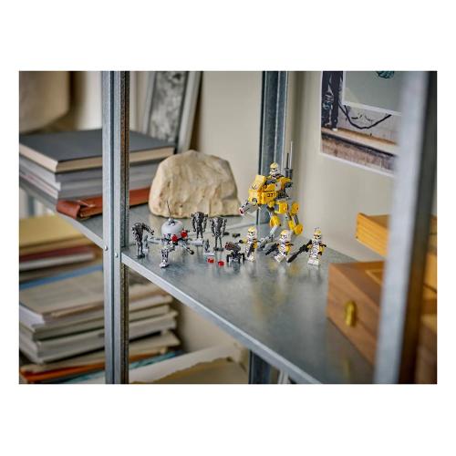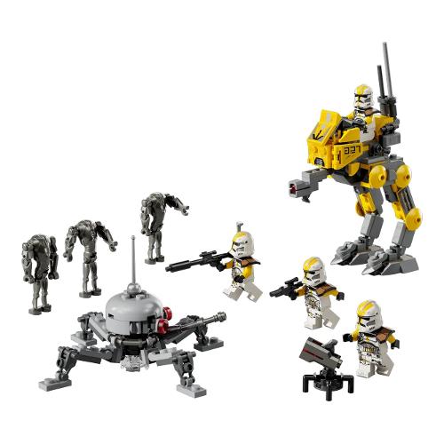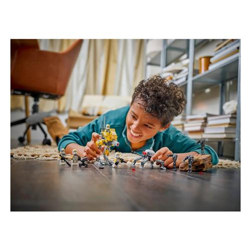 Costruisci un plotone del 327° Star Corps di Clone Trooper e affronta i Super Battle Droid con questo set Battle Pack LEGO® Star Wars: La vendetta dei Sith (75431) per bambini. Contiene 4 minifigure di Clone Trooper LEGO Star Wars™ con i loro iconici outfit del 327° Star Corps e 3 personaggi LEGO Super Battle Droid. Questo set di gioco Star Wars costruibile include anche un Walker AT-RT con una cabina di pilotaggio per minifigure LEGO, uno shooter e un compartimento per un blaster e un binocolo e una torretta con shooter per i Clone Trooper, mentre i Super Battle Droid hanno uno droide ragno per ispirare epiche battaglie di gioco.