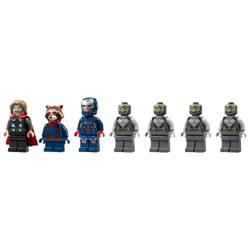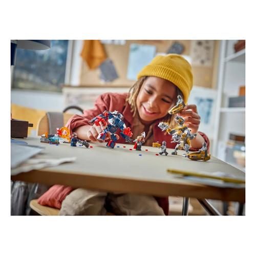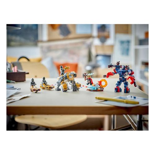 Basato su un’iconica scena di battaglia del film Marvel Avengers, questo set di supereroi costruibile include 2 grandi figure LEGO: il mech Iron Patriot, con 4 shooter, e un temibile gorilla Chitauri. Entrambi sono snodabili per un gioco dinamico. Sono presenti 7 minifigure: Iron Patriot MK2, Rocket con un grande shooter, Thor con Stormbreaker e 4 Chitauri, 2 dei quali con shooter dorati. Altre caratteristiche includono 2 jet scooter e un piccolo ambiente per Thor, dove possono essere conservati i bottoncini di ricambio. Questo set build-and-play può essere collegato al set Avengers: Endgame, la battaglia finale (76323) per un’esperienza di gioco ancora più grande. I costruttori possono anche ingrandire e ruotare i modelli in 3D utilizzando la divertente e intuitiva app LEGO Builder.