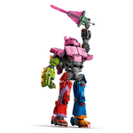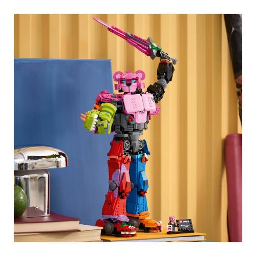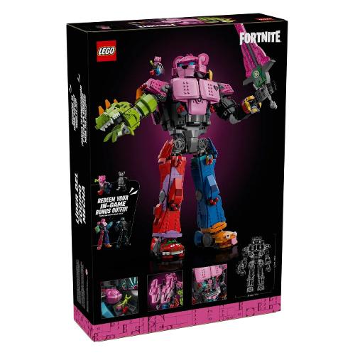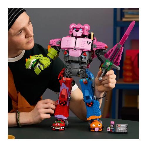 Un progetto coinvolgente che consente di creare il personaggio del mech del videogioco, basato su un iconico personaggio robotico che salva l’isola nel Capitolo 1 di Fortnite Battle Royale, prima di scoprire il suo potenziale espositivo. I fianchi, le braccia, i piedi e la testa del personaggio possono essere orientati in diverse posizioni e la figura è anche dotata di spada accessoria giocattolo. È presente anche una minifigure basata sullo stesso personaggio che può essere posizionata sul sedile di guida nella cabina di pilotaggio nel torace della figura.