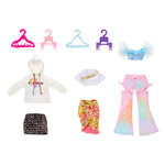 una bambola articolata esclusiva con capelli e stivali arcobaleno, moda extra appesa all'attaccapanni, borse e scarpe. I bambini si divertiranno un mondo a vestire la loro bambola preferita, il personaggio preferito dai fan! La confezione include: 6 vestiti alla moda, 2 paia di scarpe, 2 borse, 1 pettine, Armadio con 4 grucce per organizzare altri pezzi di moda, 4 ripiani alti per scarpe