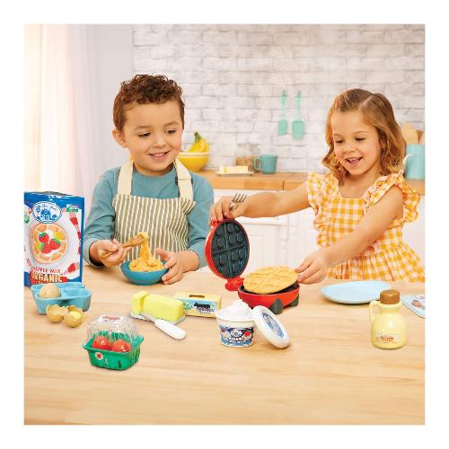 Il kit waffle per chef creativi consente ai bambini di diventare creativi attraverso l'apprendimento pratico e l'immaginazione. Con pezzi funzionali e altamente dettagliati, i bambini possono preparare il loro piatto e creare le proprie repliche dei loro piatti preferiti. Oltre 18 accessori realistici per la cucina e la colazione, tra cui bottiglia di sciroppo e burro affettabile. Include una sabbia scorrevole modellabile riutilizzabile, una scheda con ricette per insegnare ai bambini a seguire le istruzioni visive di base. Playset realistico e iper dettagliato che combina gioco creativo e gioco di ruolo e incoraggia i bambini a interagire e sviluppare le loro capacità creative