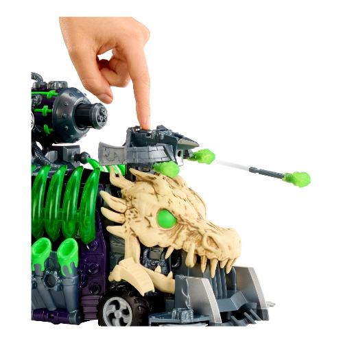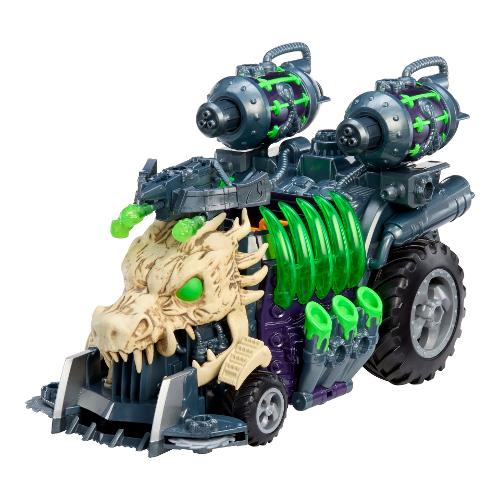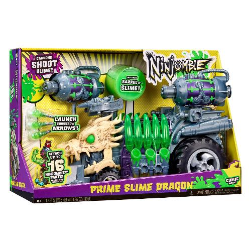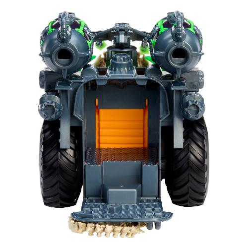 sosta per l'avventura Ninjombie definitiva! Tre cannoni di melma, Crossboss funzionante nella parte anteriore, Adatto a tutti i personaggi Ninjombie. Ripiega i pannelli laterali per far salire più Ninjombie. Il retro si apre per ulteriore spazio di archiviazione. Due lame rotanti nella parte anteriore
