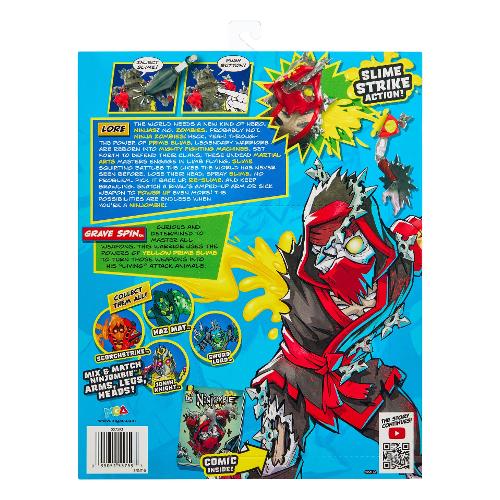 Scatena il divertimento con le action figure Ninjombie! Riempi questa action figure di slime, premi il pulsante sul retro per guardare lo slime fuoriuscire dalla testa, dal braccio o dalla gamba, creando la resa dei conti ninja definitiva! La confezione include: 1 personaggio, 1 arma, siringa con lama kunai, 1 flacone di slime