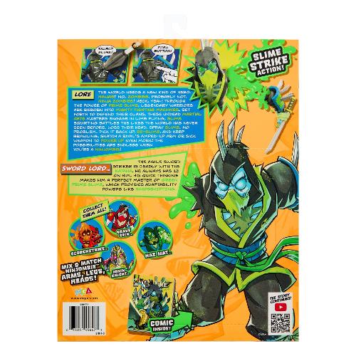 Scatena il divertimento con le action figure Ninjombie! Riempi questa action figure di slime, premi il pulsante sul retro per guardare lo slime fuoriuscire dalla testa, dal braccio o dalla gamba, creando la resa dei conti ninja definitiva! La confezione include: 1 personaggio, 1 arma, siringa con lama kunai, 1 flacone di slime