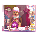 Bambola Magic Eyes con corpo Soft Touch ed estetica realistica in una bellissima tutina. 10+1 accessori: album per neonati con adesivi, braccialetti per bambola e bambino, biberon, ciuccio,
