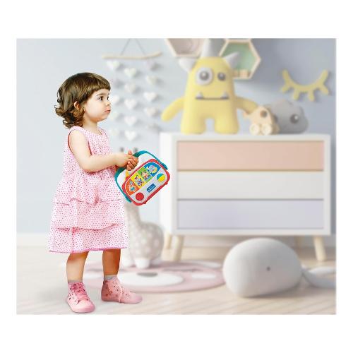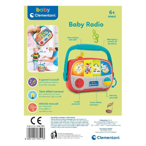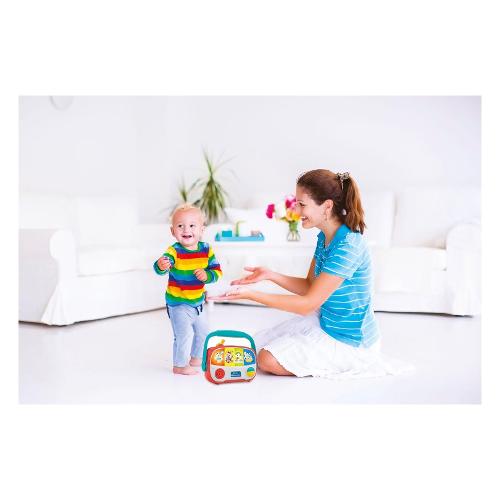Un piccolo centro attività portatile a forma di radiolina per giocare con la musica e divertirsi con gli amici animali. Premi i pulsanti per scegliere la stazione musicale ed il genere preferito! Con pulsanti colorati e luminosi che attivano canzoncine diverse per guidare il bambino in esperienze di gioco coinvolgenti e interattive attraverso stimoli sempre nuovi. Alle canzoncine, ai suoni e ai diversi effetti luminosi che catturano l’attenzione del bambino si aggiungono piccole interazioni fisiche per sviluppare l’aspetto cognitivo e la motricità fine. Ogni pulsante, attività e materiale impiegato è studiato per rendere facile e accogliente l’utilizzo del gioco da parte del bambino. Ad ogni animale corrisponde un genere musicale per far familiarizzare il piccolo con diversi ritmi: uno stile pop per il cane, rock per il gallo, rap per il gatto e rilassante per l’uccellino. Quattro grandi pulsanti da premere per ascoltare i versi degli animali e le loro canzoncine, una pallina per stimolare l’attività meccanica e la comoda maniglia per trasportare la radiolina ovunque. La cura del dettaglio, lo studio delle attività, la ricerca dei colori sono frutto di una competenza 100% italiana che garantisce la qualità e la sicurezza del prodotto.