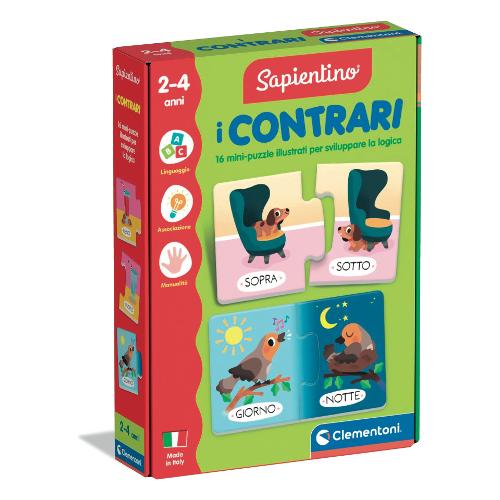 Un gioco che accompagna i più piccoli alla scoperta del concetto degli opposti. Include 16 puzzle illustrati a 2 pezzi con incastri autocorrettivi, per giocare in autonomia. Supporta lo sviluppo cognitivo e linguistico e allena il pensiero logico. Scopri l'intera gamma di giochi educativi clementoni studiati per tutte le fasi dello sviluppo del bambino. Made in italy
