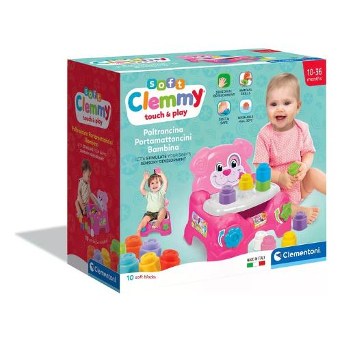 La poltroncina Clemmy Baby che riproduce una simpatica cagnolina è pensata per far divertire i più piccoli in tutta comodità. Le divertenti attività interattive poste alla base della poltroncina aiutano la bambina a sviluppare la manualità. La seduta, divertente base di gioco, è solida e accogliente e nasconde un pratico vano contenitore per i mattoncini. I morbidissimi mattoncini Clemmy Baby sono sicuri, atossici e lavabili. Ideato, progettato e sviluppato in Italia.