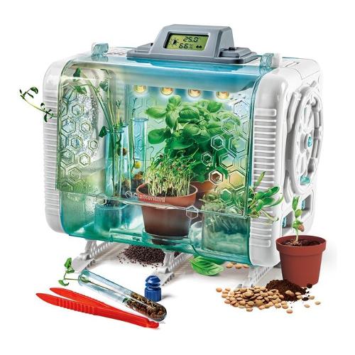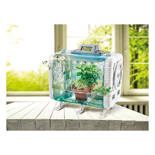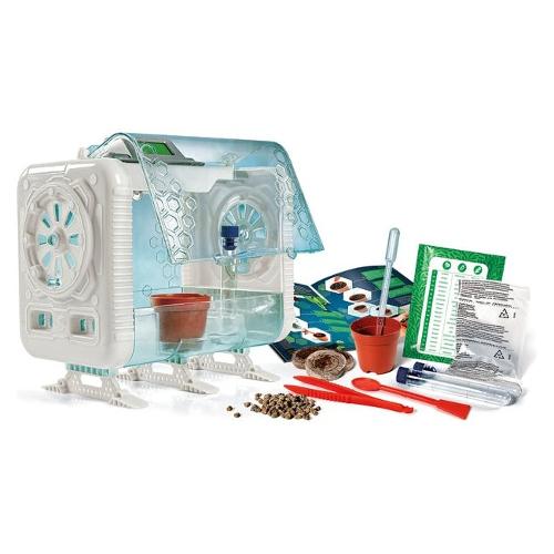 Non solo una serra... ma un'esperienza di gioco per sperimentare con la botanica del futuro! Con un design studiato ad hoc per allenare il tuo pollice verde! Grazie ai sensori contenuti nel modulo e allo schermo lcd potrai controllare in ogni momento temperatura, umidità e illuminazione all'interno della tua serra! Attenzione agli effetti luminosi! I led ti segnaleranno quando c'è bisogno di acqua o quando la temperatura è troppo alta! Se vuoi accendili di notte per osservare in ogni momento la cresciuta delle tue piante! Potrai sperimentare 3 diverse modalità di crescita delle piante e apprendere tante curiosità sul mondo della botanica. Età consigliata: + 8 anni