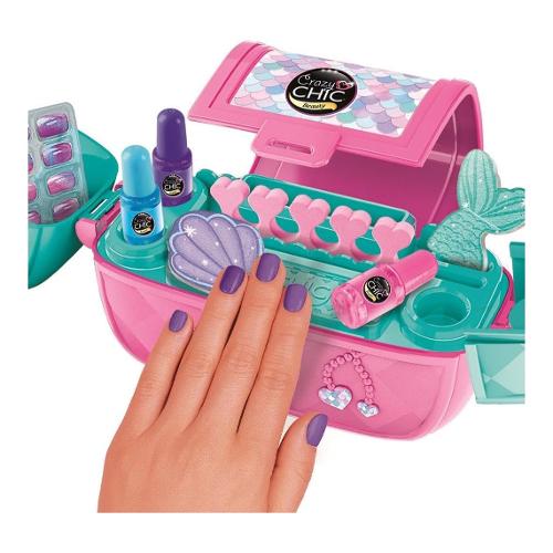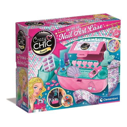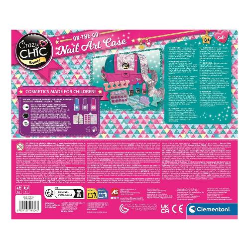Una bellissima ed originale borsetta che contiene tutto l'occorrente per creare delle bellissime unghie in stile crazy chic. La borsa si apre come uno scrigno, trasformandosi in un banchetto di gioco con smalti, unghie finte, stickers e altri accessori per poter realizzare delle unghie alla moda. La borsa è dotata di una pratica tracolla per portarla con te e giocarci ovunque tu sia! Un gioco che stimola la creatività in campo beauty, sicuro e testato. Progettato e disegnato in italia. Consigliato dai 6 anni in sù.