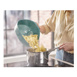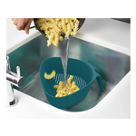 Lo scolapasta Joseph Joseph Duo unisce praticità e design intelligente per semplificare ogni operazione in cucina. Realizzato in nylon resistente e privo di BPA, presenta una forma triangolare unica che facilita lo svuotamento rapido e preciso. La maniglia verticale garantisce stabilità durante l'uso, anche con una sola mano, mentre i piedini integrati permettono di appoggiarlo comodamente nel lavello senza rischio di ribaltamento. Ideale per scolare pasta, verdure e altri alimenti, è leggero e funzionale.