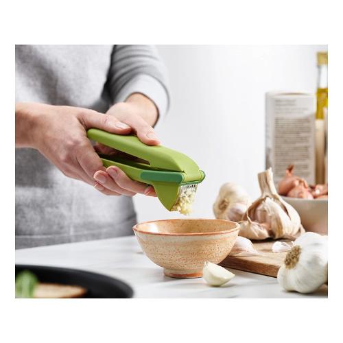 Lo spremi aglio/pressa trita aglio Joseph Joseph della serie Duo è un utensile pratico e potente, ideale per schiacciare l'aglio con facilità. Con un meccanismo forte e semplice da usare, consente di ottenere aglio tritato rapidamente. Il design è pensato per una pulizia facile, con una spazzola incorporata nel manico per rimuovere l'aglio schiacciato e uno strumento per eliminare residui e bucce incastrate.