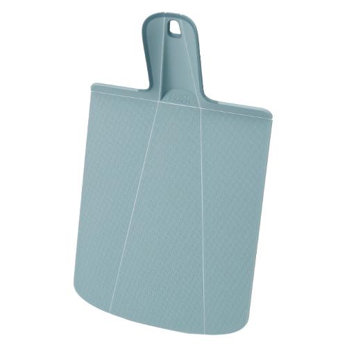 Questo tagliere pieghevole è progettato per rendere più semplice il trasferimento degli alimenti. Aperto, offre una superficie resistente adatta all'uso con i coltelli, ideale per diverse operazioni di preparazione. Premendo la maniglia ergonomica, i lati si sollevano, trasformandosi in uno scivolo pratico per far scorrere facilmente scarti o ingredienti tritati. Grazie alla tecnologia "living-hinge", assicura una piegatura duratura, mentre i piedini antiscivolo garantiscono stabilità durante l'uso