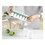 Lo stampo per ghiaccio Joseph Joseph Duo Easy Release è la soluzione ideale per realizzare facilmente cubetti di ghiaccio in freezer, senza sforzi e senza schizzi. Permette di ottenere 14 cubi di ghiaccio medio-grandi, perfetti per rinfrescare bevande o preparare cocktail. Realizzato in silicone resistente con coperchio adesivo, è progettato per essere impilabile con altri stampi dello stesso tipo, ottimizzando lo spazio nel congelatore. Il pratico pulsante sul retro consente di rilasciare i cubetti con un semplice gesto, evitando torsioni o rotture dello stampo. Facile da usare e lavabile in lavastoviglie, unisce funzionalità e design nei toni bianco e azzurro per una cucina sempre organizzata.
