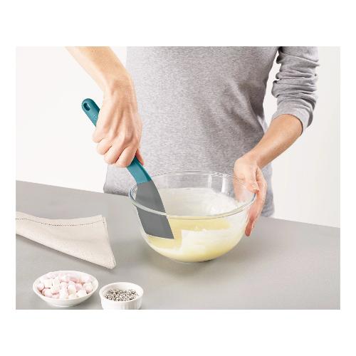 La spatola leccapentola Duo di Joseph Joseph è un accessorio indispensabile in cucina, progettato per offrirvi praticità ed efficienza durante la preparazione dei vostri piatti preferiti. Realizzata in plastica senza BPA e silicone di alta qualità, questa spatola combina resistenza e flessibilità, garantendo un utilizzo sicuro e duraturo. Il design intelligente con testa angolare permette di raggiungere facilmente gli angoli di scodelle e pentole, assicurando che nessuna parte dell'impasto o della crema venga sprecata. Il manico ergonomico offre una presa comoda e sicura, facilitando le operazioni di miscelazione, lisciatura di glasse e creme o la pulizia di recipienti.
