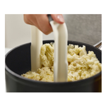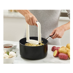 Lo schiacciapatate Joseph Joseph della serie Duo è progettato per facilitare la preparazione del purè con un design salvaspazio. Realizzato in plastica senza BPA e termoplastica, con una comoda impugnatura antiscivolo per una presa sicura. Il suo design ripieghevole con blocco consente di risparmiare spazio quando non in uso, e si adatta perfettamente ai bordi curvi delle padelle. Ideale per chi cerca praticità e funzionalità in cucina.
