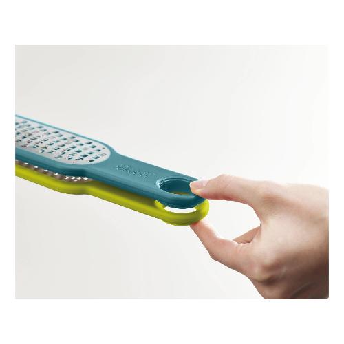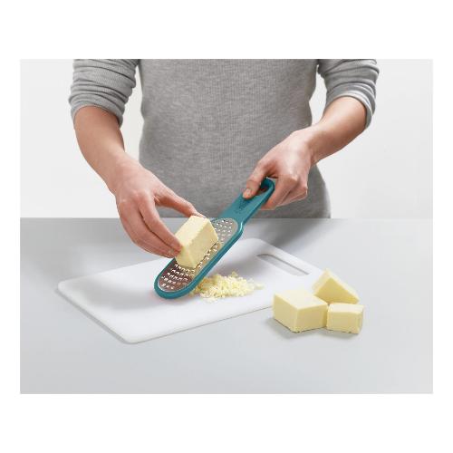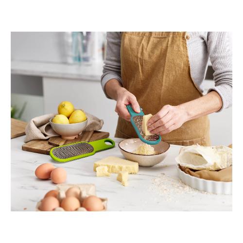 Il set da 2 grattugie Joseph Joseph Duo è una soluzione pratica e versatile per le vostre preparazioni quotidiane. Ogni grattugi è dotata di una lama in acciaio inox resistente e di un manico morbido al tatto, che assicura una presa confortevole e sicura durante l'uso. Il set include una grattugia a grana fine e una a grana grossa, ideali per formaggi duri e morbidi, scorze di agrumi, frutta secca, cioccolato e molto altro. Leggere e funzionali, le grattugie sono facili da pulire e lavabili in lavastoviglie. Proposte nei colori blu e verde, aggiungono un tocco di colore e praticità alla vostra cucina.