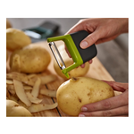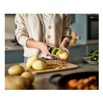 Lo sbucciatore per frutta e verdura Duo di Joseph Joseph è progettato per rendere la preparazione dei cibi rapida e semplice. Realizzato in plastica resistente e acciaio inox, ha un design compatto e ergonomico che assicura una presa comoda durante l'uso. Offre la possibilità di realizzare tagli a julienne perfetti, ideali per patate, ortaggi, frutta e molto altro. Il pratico occhiello laterale permette di rimuovere facilmente i germogli dalle patate, rendendo questo utensile multifunzionale e indispensabile in cucina. I colori verde e grigio aggiungono un tocco moderno e vivace, mentre la lama in acciaio inox garantisce precisione e durata nel tempo