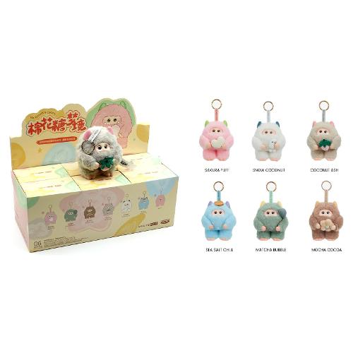 L’assortimento completo include sei personaggi distinti, confezionati in scatole chiuse con contenuto a sorpresa. Un settimo personaggio, raro e collezionabile, compare casualmente con una frequenza di uno ogni 72 figure standard. Altezza dei peluche: 12,5 cm circa.