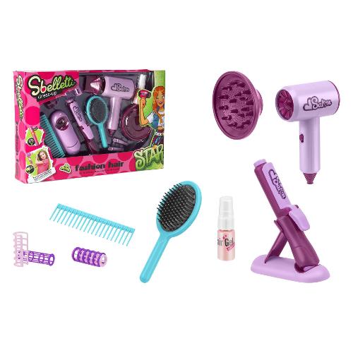 Trasforma ogni momento in un gioco da star! Divertiti con il set bellezza Sbelletti: con la piastra per capelli, il phon con diffusore dalle funzioni realistiche e tanti accessori come spazzola, bigodini e mollette colorate, ogni bambina potrà sentirsi come in un vero salone di bellezza.