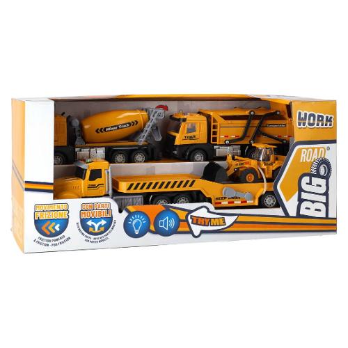 Dai inizio ai lavori con questo set di veicoli da cantiere a frizione! Ogni mezzo è dotato di luci, suoni realistici e parti movibili, per ricreare vere scene da cantiere e vivere avventure sempre nuove. I 4 veicoli si muovono facilmente grazie al meccanismo a frizione, stimolando l’immaginazione.