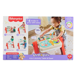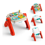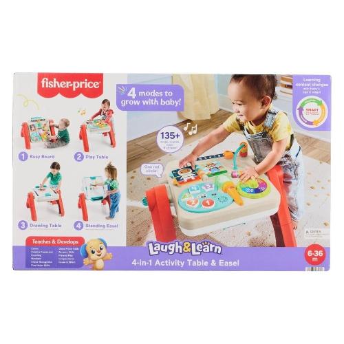 Il tavolo attività e cavalletto 4 in 1 Fisher-Price Ridi e Impara intrattiene i più piccoli mentre giocano, imparano e creano mentre crescono! Questo giocattolo interattivo per l'apprendimento si trasforma facilmente da tavolo attività con seduta a tavolo attività per bambini piccoli, tavolo gioco aperto e cavalletto per disegnare, offrendo infinite opportunità di gioco. Il tavolo attività include una varietà di attività pratiche da esplorare per i più piccoli, oltre a 3 livelli di apprendimento Smart Stages con oltre 135 canzoni, suoni e frasi. Basta ruotare la parte superiore per sganciare il cavalletto a clip con spazio integrato per tutti gli oggetti essenziali del tuo piccolo artista. Usa il pulsante a forma di globo per selezionare una lingua: inglese, spagnolo, italiano o portoghese.