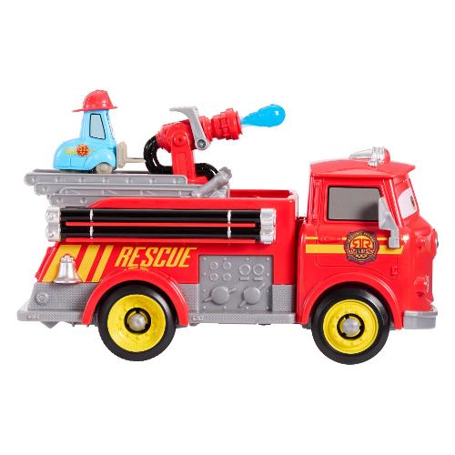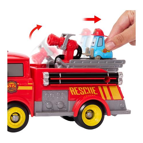 Ci sono Red e Guido Pompieri del playset Disney e Pixar Cars Radiator Springs Sfreccia e Soccorri a salvare la situazione! Il camion dei pompieri giocattolo di grandi dimensioni cattura lo spirito e la personalità di Red e include Guido non rimovibile che aiuta nel salvataggio! Prepara i due bersagli a forma di fiamma inclusi, quindi manda Red e Guido sulla scena.