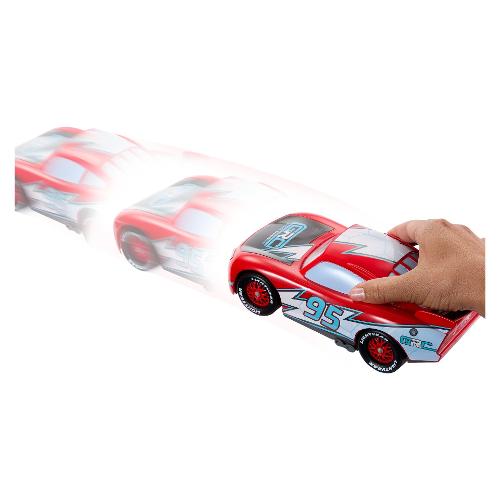 Grazie alle due modalità di gioco che accendono la corsa, questa macchinina giocattolo Disney e Pixar Cars Saetta McQueen è pronta a sfrecciare verso il divertimento! La Corsa Globale porta i veicoli migliori a Radiator Springs per una sfida mondiale. Saetta McQueen Derapa & Sfreccia è dotato di una modalità derapa e di una modalità sfreccia: i bambini possono selezionare la loro preferita utilizzando l'interruttore presente sulla parte inferiore del giocattolo, quindi tirare indietro l'auto e guardarla partire! Sono inclusi quattro coni di carta per realizzare una pista rettilinea o divertenti ostacoli tra cui fare spettacolari acrobazie! Premi il pulsante sulla parte superiore della testa di Saetta McQueen per dare ancora più vita al personaggio con il suo sguardo da corsa.