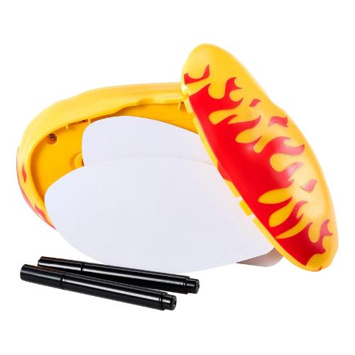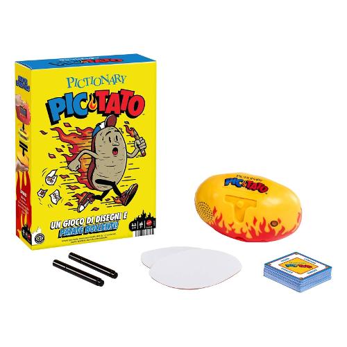 Disegna più in fretta che puoi con Picionary Pic-Tato, una nuova versione del classico gioco di disegni per tutta la famiglia. Il Pic-Tato riproduce musica mentre i giocatori disegnano indizi. Dopo aver indovinato un indizio, il Pic-Tato indica come proseguire, in modo che un altro giocatore possa disegnare un nuovo indizio. Ogni risposta corretta vale dei punti: al termine della musica, vince il giocatore con il maggior numero di punti! Ma non essere l'ultimo ad avere il Pic-Tato!